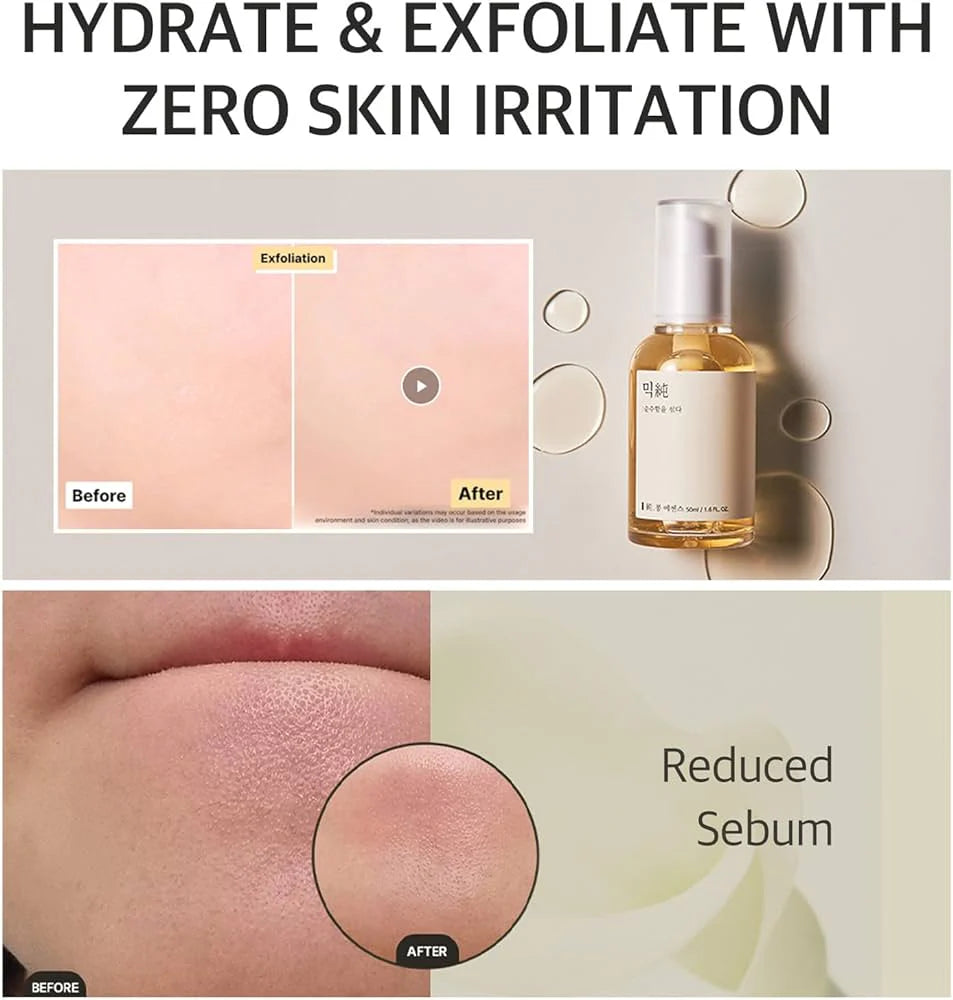 Fermented Soybean Extract is the star here: rich in amino acids and natural enzymes that smooth texture, brighten tone, and help rebuild elasticity over time. Pomegranate and Barley Extracts add hydration and calm inflammation, keeping skin balanced and resilient. The result? Pores look refined, tone looks even, and your skin feels like silk.